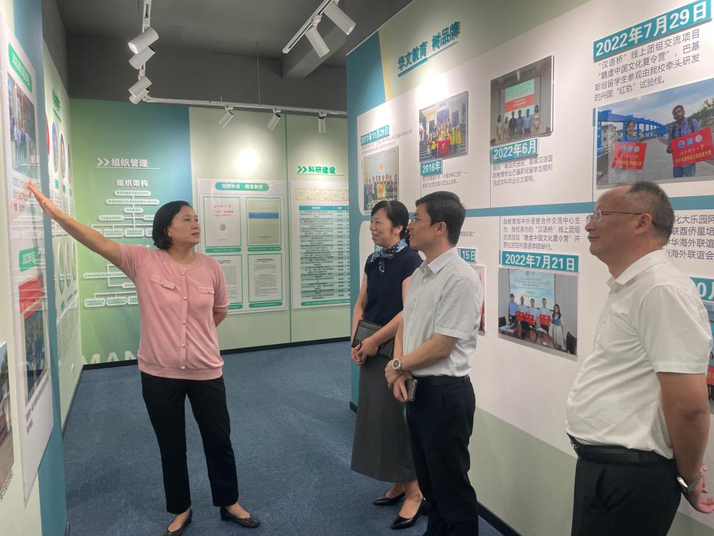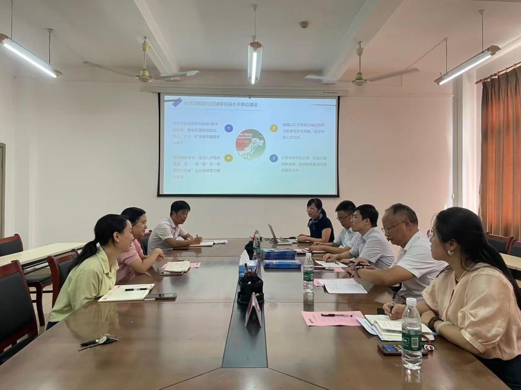10月15日下午,我校副校长汪航莅临我院巴基斯坦研究中心,指导迎接教育部评估工作。汪航副校长一行首先参观了巴基斯坦研究中心展示馆,随后在学院召开推进巴研中心迎接教育部评估工作专题会议。校社会科学处处长王小元、项目与成果管理科科长袁志明、综合科科长李欣,以及我院党委书记肖桂芳、党委副书记贺示婷、副院长李火秀、党政办主任邓荣宗共同出席此次会议,会议由肖桂芳主持。